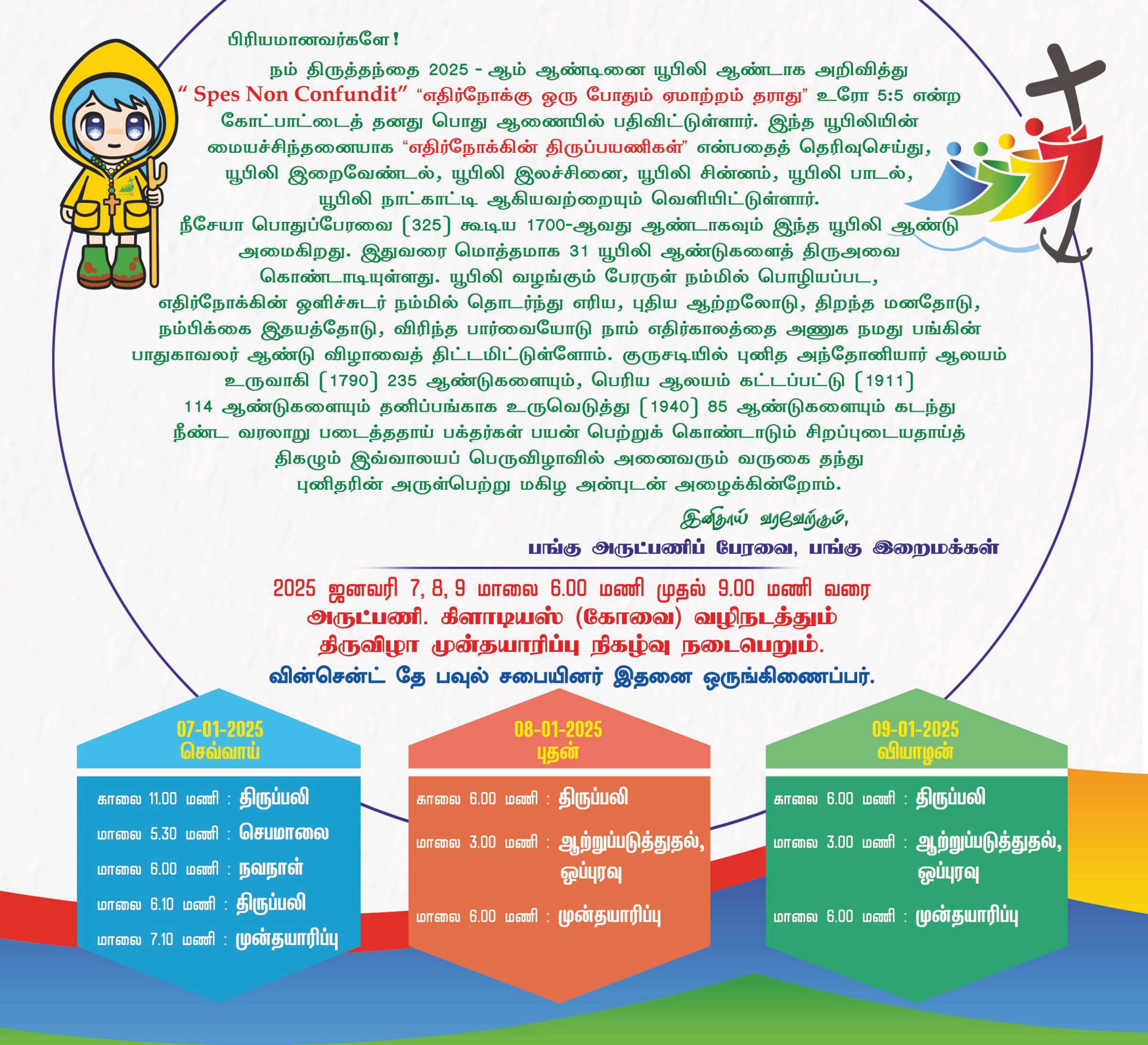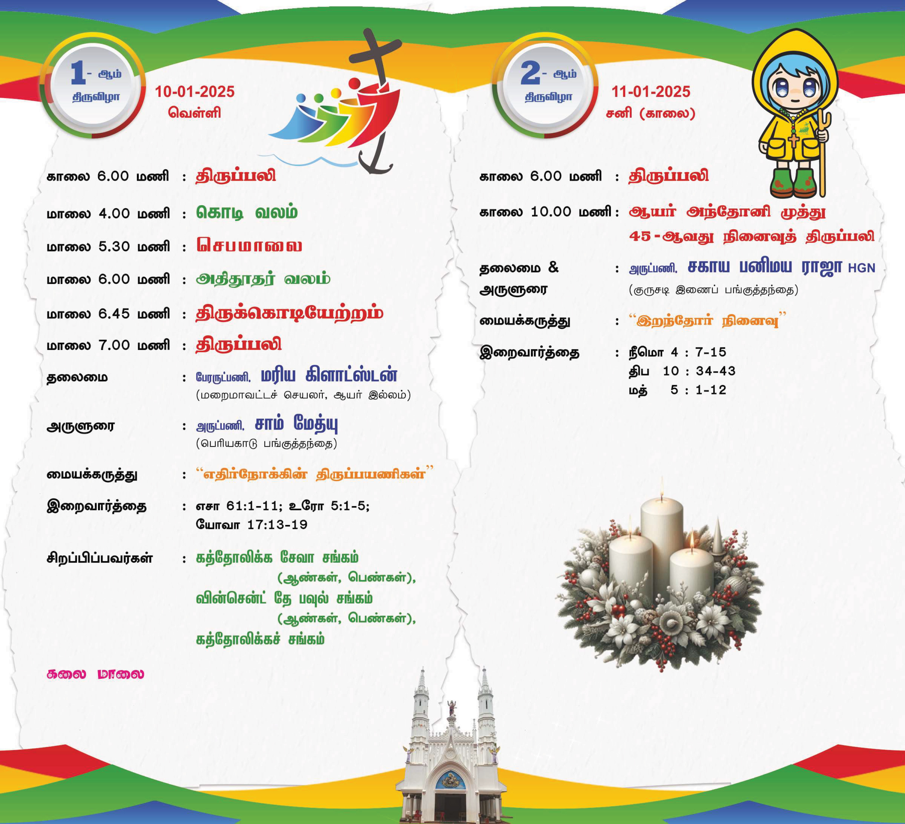 The feast will commence with the hoisting of the Holy Flag and the concelebrated Holy Mass presided over on 10th January 2025 and ends on 19th January 2025.